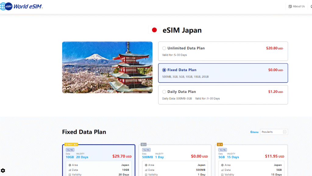 World eSIM is an all-in-one travel data solution offering coverage in many countries, including dedicated regional plans for Asia and Japan. It’s particularly appealing for travelers visiting multiple destinations in one trip. The brand emphasizes flexible connectivity, no contracts, and easy online activation. Their Japan eSIMs are known for stable performance and competitive rates.